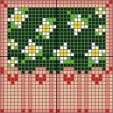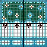 転載許可をいただいていないので、型紙の公開はなしです。白レンガに関しては、ヨコボックスの下の方のレンガを見て描けば多分描けるかと…。